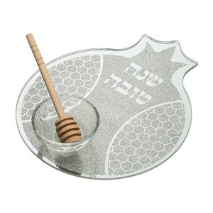 Pomegranate Shaped Glass Plate For Serving An Apple In Honey With Honey Dish At The Bottom 5x19x23cm