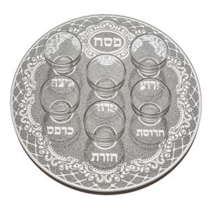 Glass Passover Tray with Stones 36 cm with 6 bowls