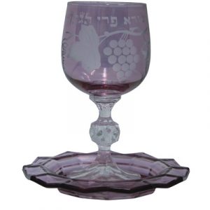 G GLASS KIDDUSH CUP PURPLE WITH PLATE 14. 5 CM