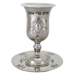 NICKEL KIDDUSH CUP 15 CM, SET WITH STONES