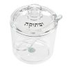 Elegant Crystal Honey Dish 7×7 Cm- With Metal Plaque- Pomegranate Motif