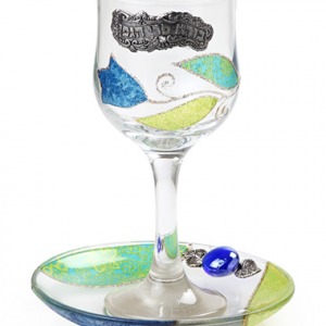 POL GLASS KIDDUSH CUP + SAUCER, “”- RED STONES