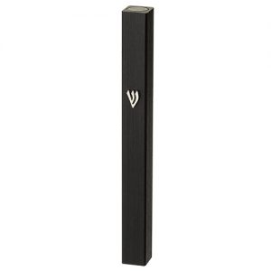Black Aluminum Mezuzah 12cm, Black Printed Shin