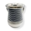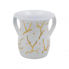 Wash Cup Stainless Steel – White – Gold Painted Highlights – Size: 5.5″H